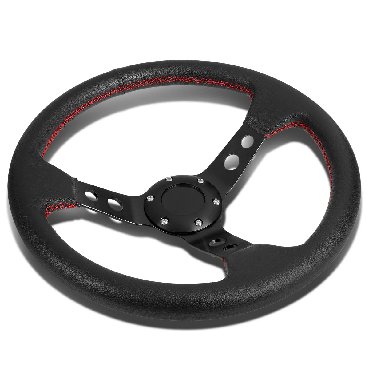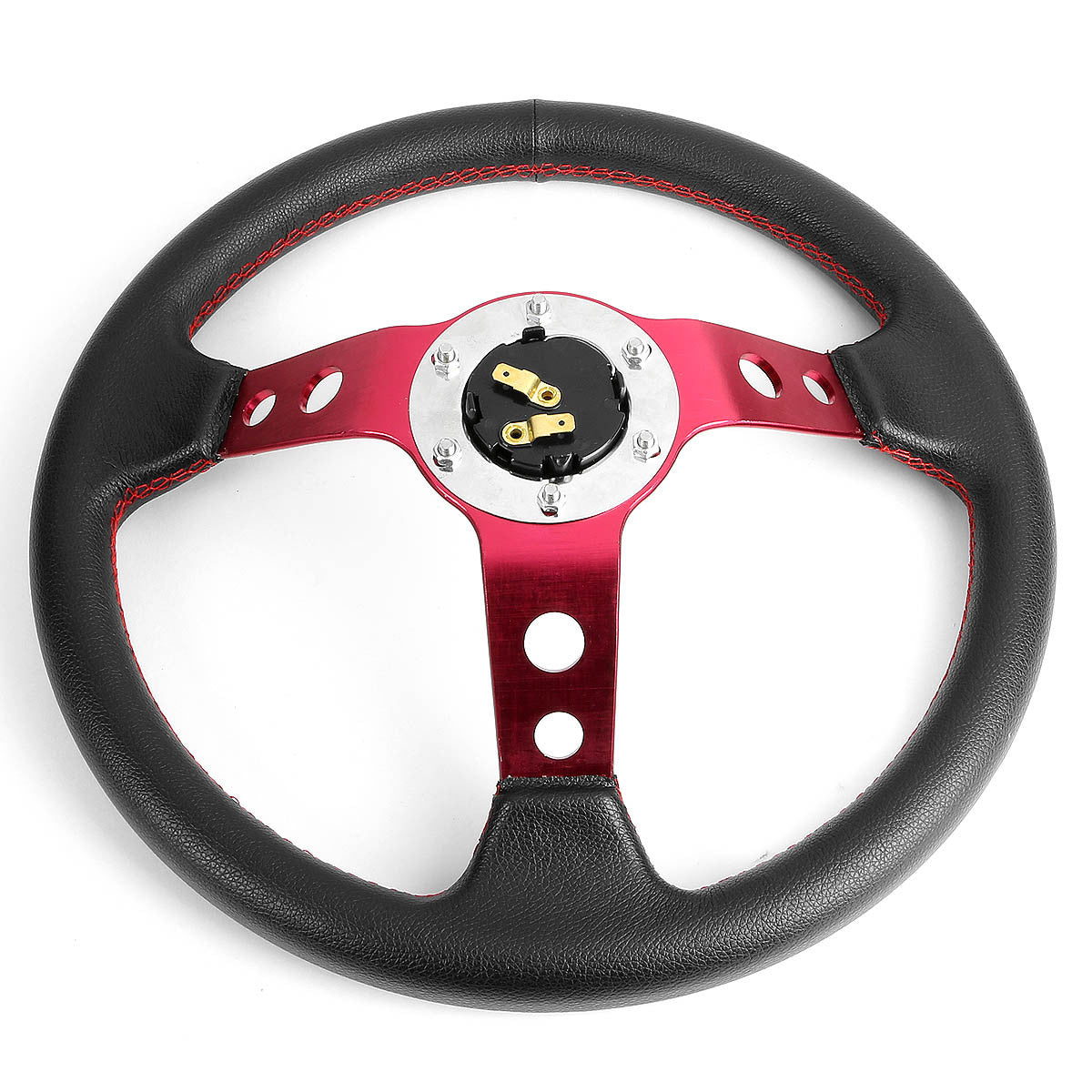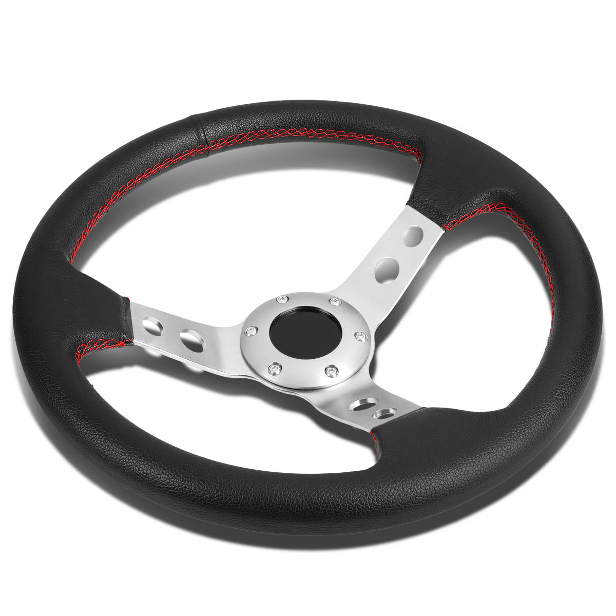345mm Aluminum 3 in. Deep Dish Spoke Leather Grip Steering Wheel
