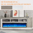 【Color Contrast Woodgrain】Black on left and brown on right in TV console. The mixed color makes this TV stand distinctive. 3D woodgrain technology gives the TV console a real texture to the touch.