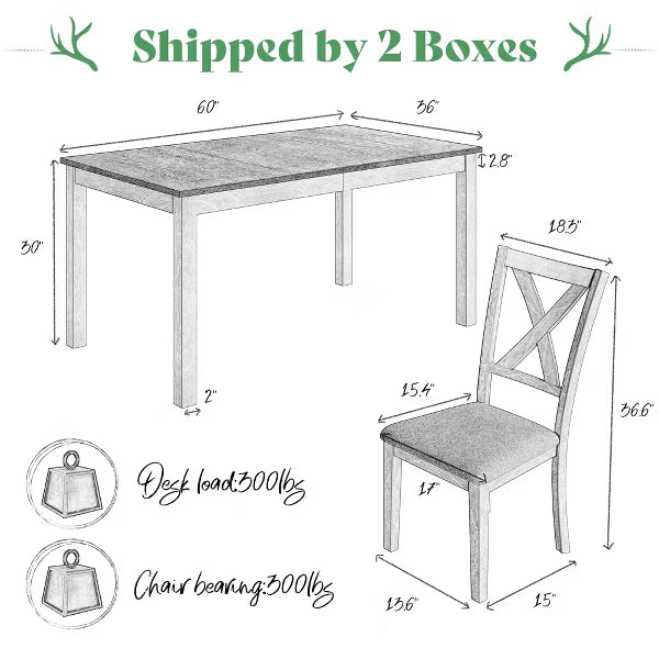 【Easy Assembly】Quick setup by two adults, complete with installation manual and all necessary hardware included. Please ensure the dining table set size fits your space for optimal use