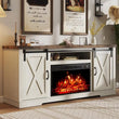 AMERLIFE Fireplace TV Stand with Sliding Barn Door for TVs up to 65", Distressed White & Barnwood