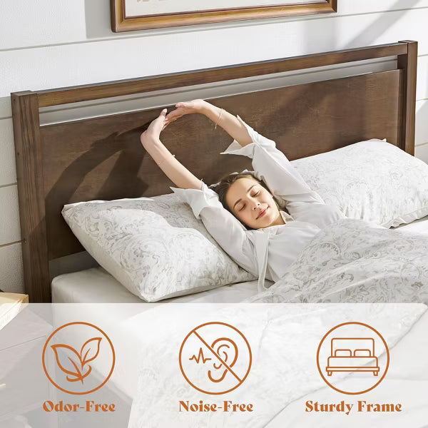AMERLIFE Solid Wood Bed Frame with Headboard, Minimalist Platform Bed