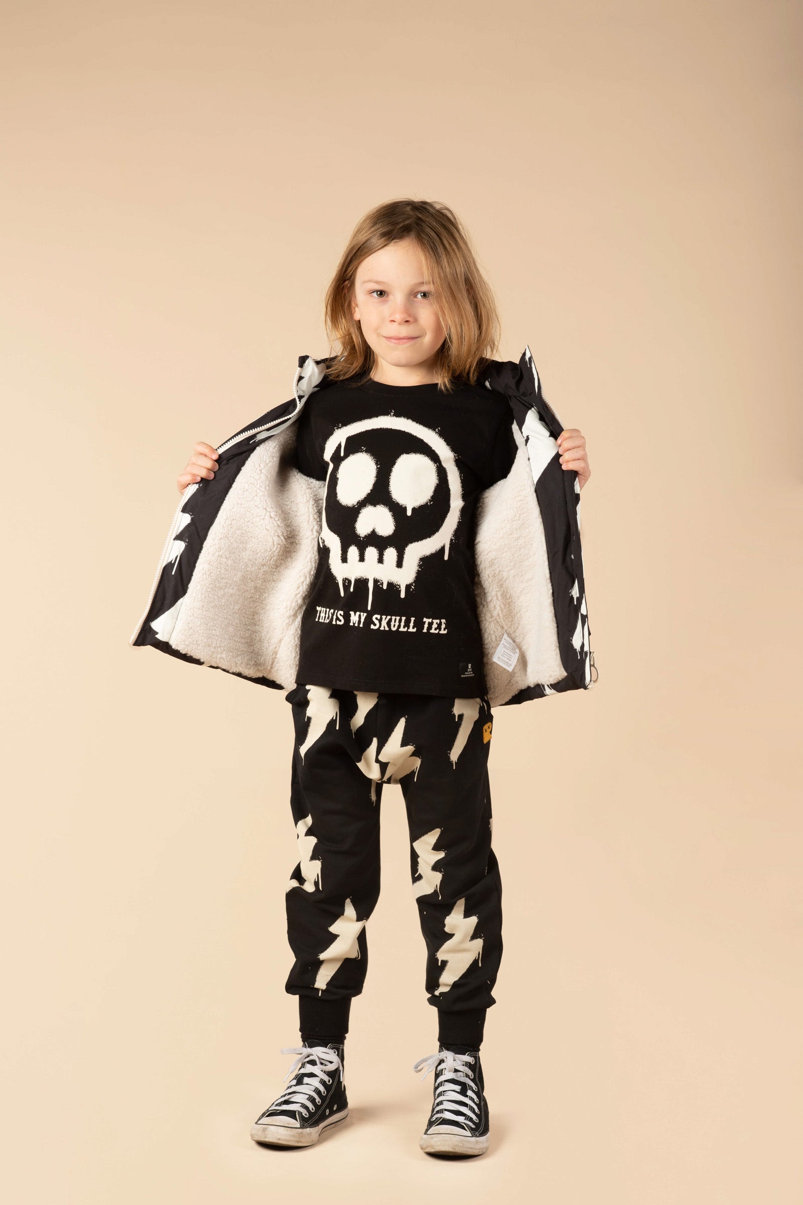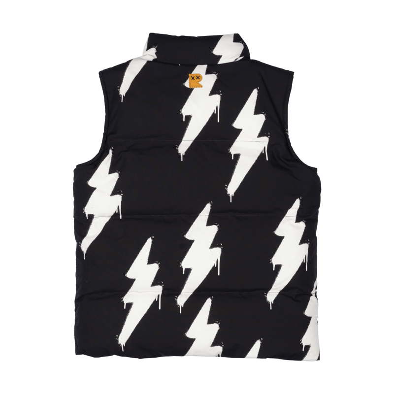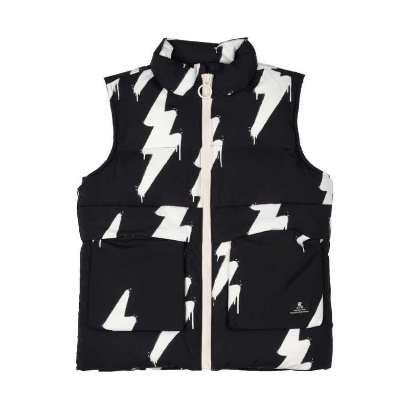 Add a blast of lighting-charged fun with our Bolt Sherpa Lined Padded Vest! Made from water and wind proof treated polyester with internal cream sherpa lining, this all-over white lightning bolt print vest is sure to bring a jolt of playful energy to any outfit. Designed with comfort and movement in mind, the front zipper and pockets ensure your young boy can play without limits. Crafted to endure active days, our Bolt Sherpa Lined Padded Vest is the perfect choice for a lightning-charged look during the colder months!