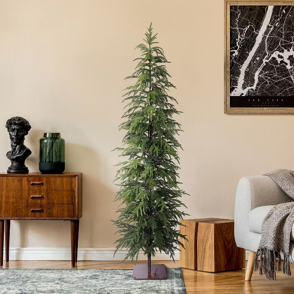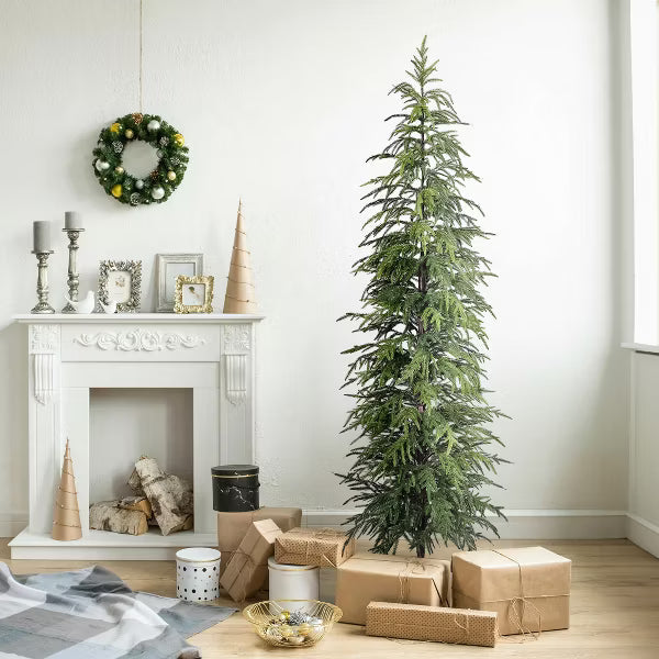 Unwrap a Rockefeller Center-worthy spectacle in your modest living room with DR.Planzen's 6ft narrow christmas tree – where Alpine wilderness meets urban living. Unlike bulky big-box christmas trees that swallow square footage, our sparse christmas tree stands proud at just 22 inches wide, slotting perfectly between bookcases or beside fireplace mantels. Seven hundred individually crafted PVC tips branch like Colorado timberland boughs, ready to cradle your grandmother's heirloom ornaments or this year's trendiest glitter stars. The magic? This artificial tree arrives pre-fluffed with memory-flex branches that bounce back when the cat attempts a climb. The weighted black base stays rooted through enthusiastic toddler present-unwrapping sessions, while the unlit design lets you choose between minimalist fairy lights or maximalist bubble-light extravaganzas. Picture Christmas morning: Sunlight filters through your balsam christmas trees silhouette as kids gasp at gifts nestled beneath its graceful form – no needle drop messing up your Instagram-worthy scene. Hosts love how it creates "double tree" magic when paired with larger centerpieces. Urbanites adore its apartment-friendly proportions that still deliver big holiday energy. While neighbors wrestle with tangled light strings, you'll be sipping spiked cocoa admiring your perfectly personalized faux christmas tree. Pro tip: Drape with cranberry garlands for traditional charm or silver tinsel for modern glam. Zero shedding. All festive spirit.