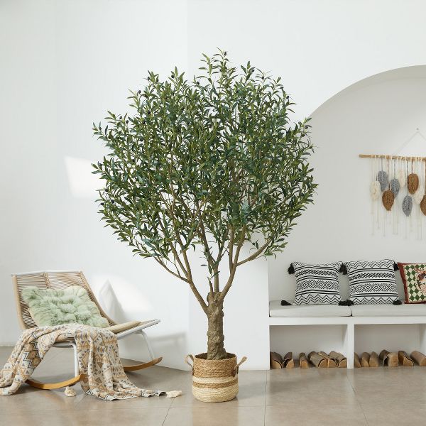 Sculptural Stump Design: Thick, textured trunk splits into lifelike branches supporting 1,296 silk leaves and UV-resistant olives - no two arrangements identical, just like Mother Nature intended