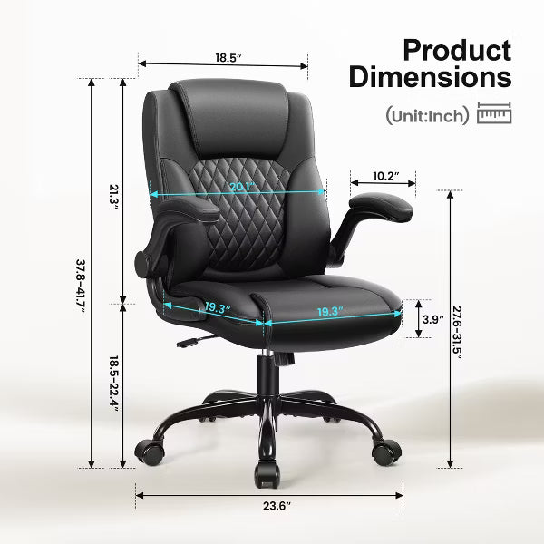 KERDOM Leather Office Chair, Big and Tall Office Chair 400LBS Wide Seat, Black