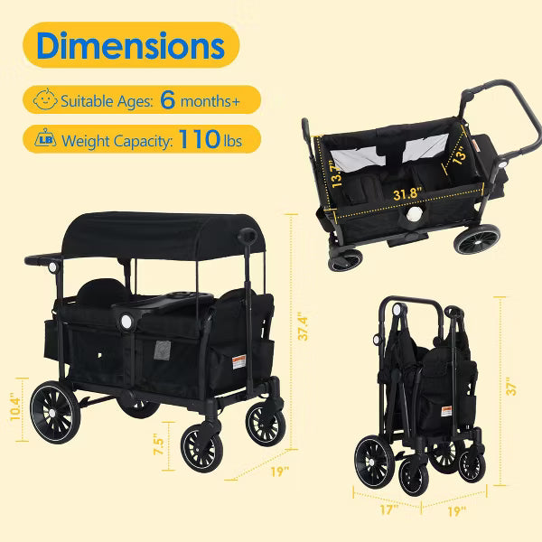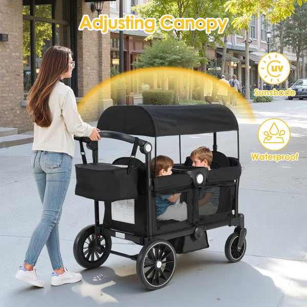 Multifunctional Usage: Accommodates two kids at once or a child and a pet, making it ideal for family outings. Remove the canopy to transform it into a spacious wagon for shopping, trips to the park, or camping.