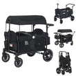 Kinder King 2-Seat Wagon Stroller, All-Terrain Foldable Stroller Wagon for Toddlers with Canopy, Snack Tray & Push/Pull Bar
