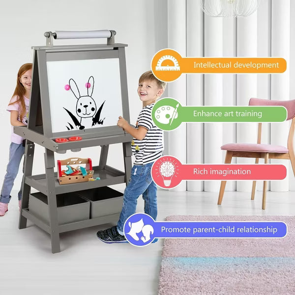 Kinder King 3 in 1 Kids Art Easel w/Storage Double-Sided Magnetic Whiteboard & Chalkboard Dry-Erase Board w/Paper Roller
