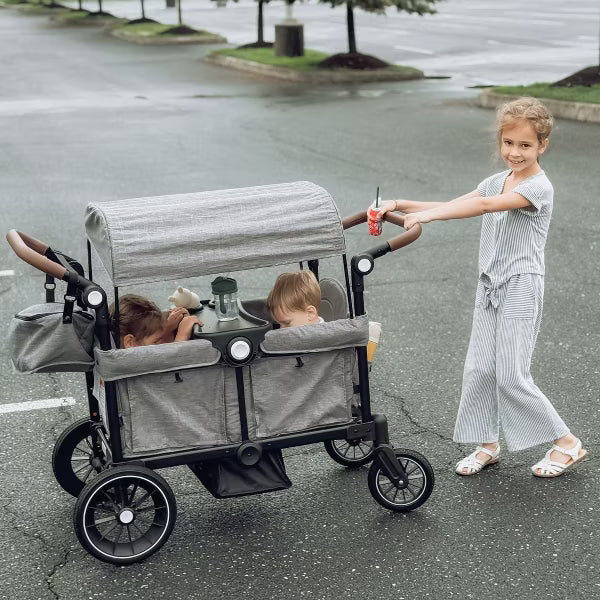 Perfect for kids or pets, this wagon stroller offers versatile use. Secure the footwell with adjustable straps for added comfort, and take advantage of the spacious storage — ideal for shopping or day trips.