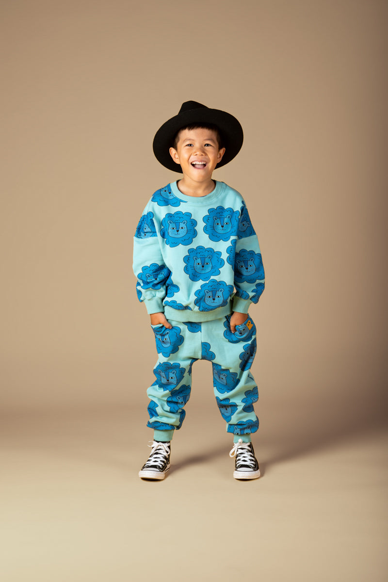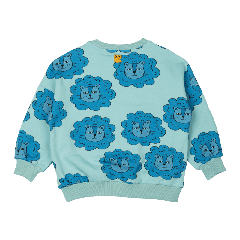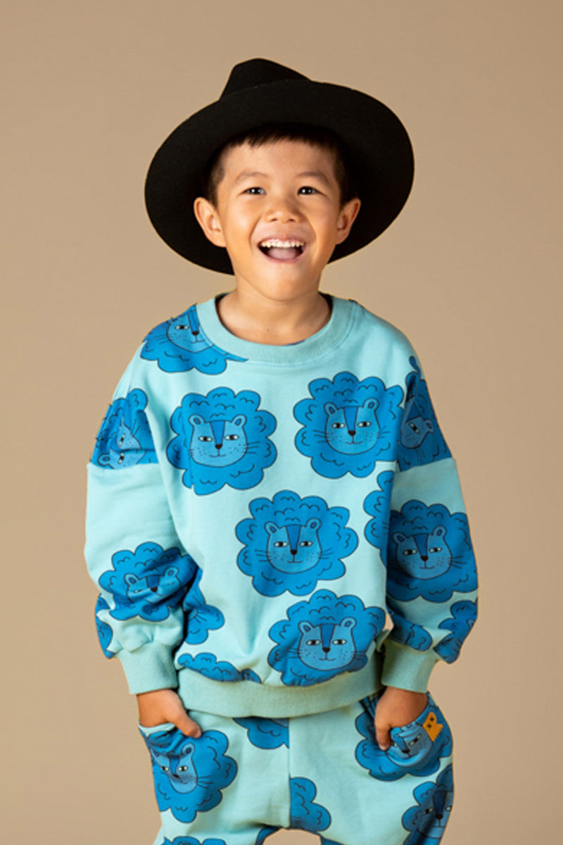 Roar like a lion in our Mane Event Blue Sweatshirt. This bright and colourful jumper features an all over print of lions on a blue base. It has ribbing at the neck, hem and sleeve cuffs with dropped shoulders and a relaxed fit. It is made from 290GSM 95% cotton 5% elastane fleece. This print is also available in track pants.