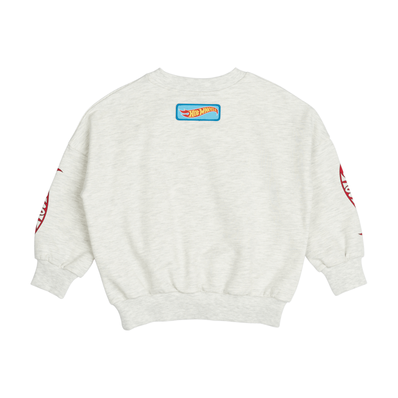 Our Roger Dodger Hot Wheels Sweatshirt features a souped up car front print with the Hot Wheels flames on the sleeves. It also has the Hot Wheels logo patch on the nape of the neck. It is made from soft and stretchy cotton elastane French Terry with rib binding at the neck, sleeve and waist. This jumper is a relaxed fit with dropped shoulders.