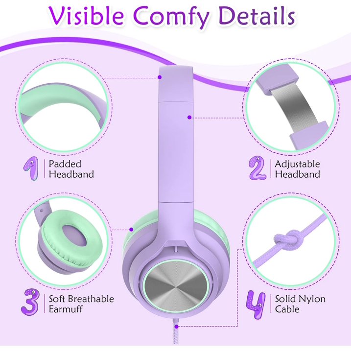 - 🎵 [90° Foldable Earpads]: Featuring 90° foldable earpads, these headphones are designed to allowing your child's headphones to be positioned or stored at the perfect angle.
