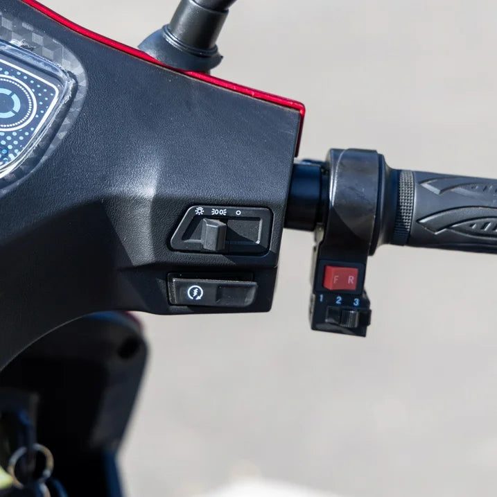 - 4. VERSATILE:front headlight with high/low beam, rear running/brake lights, horn, LCD monitor screen, front and rear brakes, speed control, parking brake, rearview mirrors, turn signals, 2 storage space, remote key, phone holder and usb charger port. The scooter ensures visibility and compliance with road regulations.