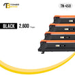 Contains: 4 Black of TN450 High Yield Toner Cartridges