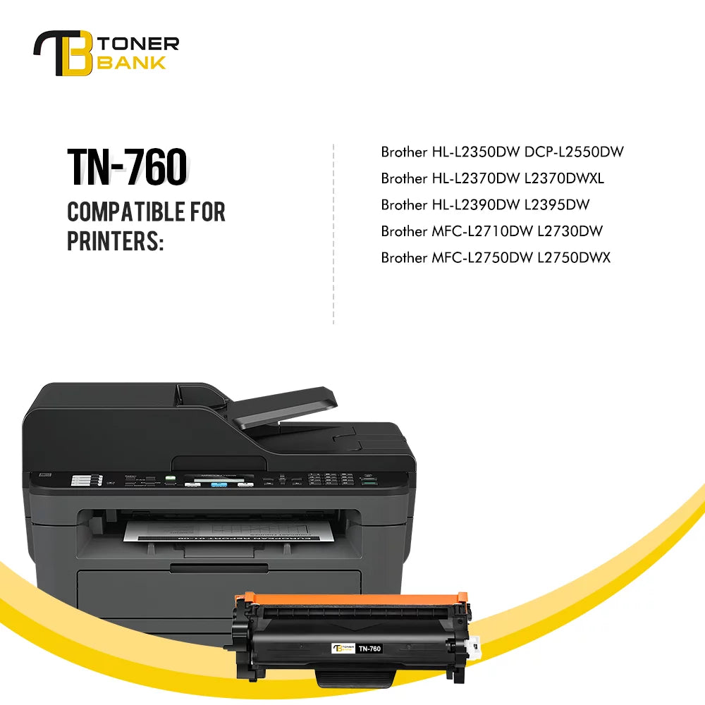 - TONER BANK Compatible Toner Replacement for Brother TN-760 DCP-L2550DW MFC-L2710DW MFC-L2750DW HL-L2370DW XL HL-L2395DW HL-L2350DW (Black, 4 Pack)