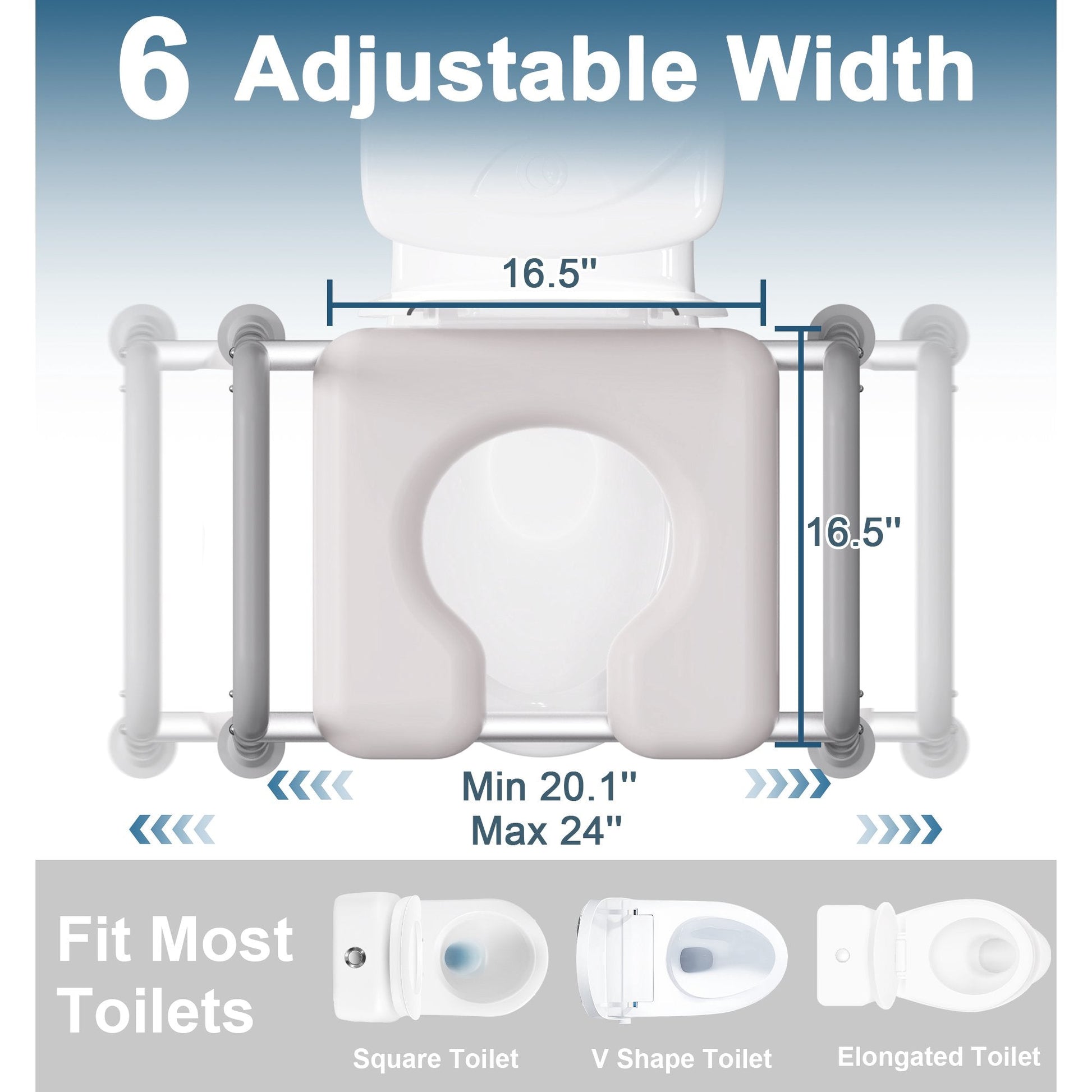 ZOTO toilet seat risers for seniors is eligible Stable & Durable - With a special welding reinforced design, this aluminum alloy raised toilet seat boasts exceptional stability. It not only comes with four sturdy support legs but also ingeniously adds crossbars on the sides, further enhancing the overall support effect. Safely supporting up to 400lbs, this elevated toilet seat ensures users enjoy a more stable and reassuring sitting experience Large & Comfortable Padded Seat - Compared to hard plastic toilet seats, our padded toilet riser offers a significant boost in comfort, allowing for prolonged sitting without discomfort. With enlarged dimensions of 16.5*16.5*1.6 inches, the soft seat cushion is designed to offer you a more spacious and comfortable toileting experience. Additionally, its excellent waterproof performance makes cleaning extremely Adjustable Width & Height - Our raised toilet seat with handles features adjustable height and width, offering excellent adaptability. It can be adjusted from 18.1" to 24" in seat height, 27'' to 33'' in handle height, 20.1'' to 24'' in product internal width, making it suitable for people of various heights and toilets of different sizes. Perfect for the elderly, seniors, handicapped, disabled, pregnant and adult who need different height for toileting, etc Non-Slip Armrest & Rubber Feet - Our toilet assist devices with armrests feature soft gray foam grips on the handles, providing stable support and a comfortable grip for users whether they are sitting or standing. Each adjustable supporting leg is equipped with non-slip rubber feet for stability and security, preventing slipping or falling More Convenience Features - Utilizing snap fasteners and screw reinforcement for assembly, no additional tools are necessary, enabling installation in just 3 minutes. Furthermore, our handicap toilet seat with handles over toilet comes with a paper holder and storage bag, providing convenience and peace of mind to every user
